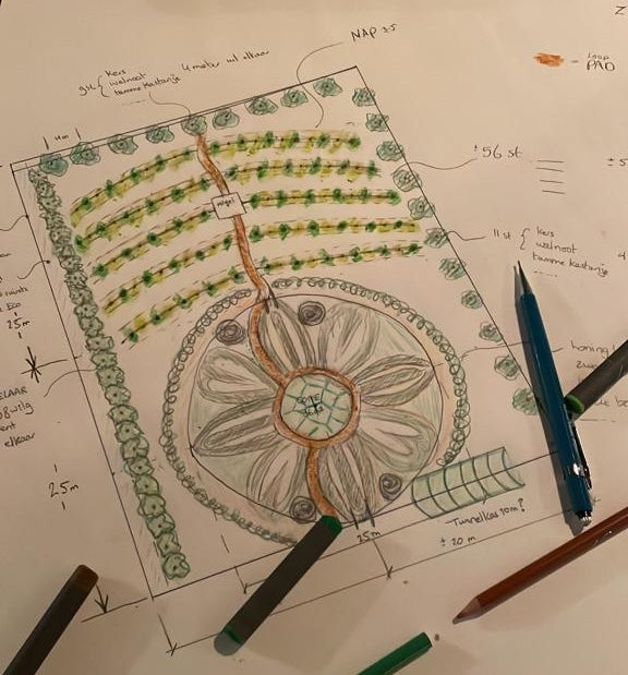 Sinds 2022 zijn wij gestart met onze eigen eetbare tuin - voedselbos. Wij hebben diverse eetbare bomen aangeplant op rij. In een andere gedeelte hebben wij veel losse fruitbomen geplant tussen bestaande beplanting om alles groener en eetbaarder te maken.